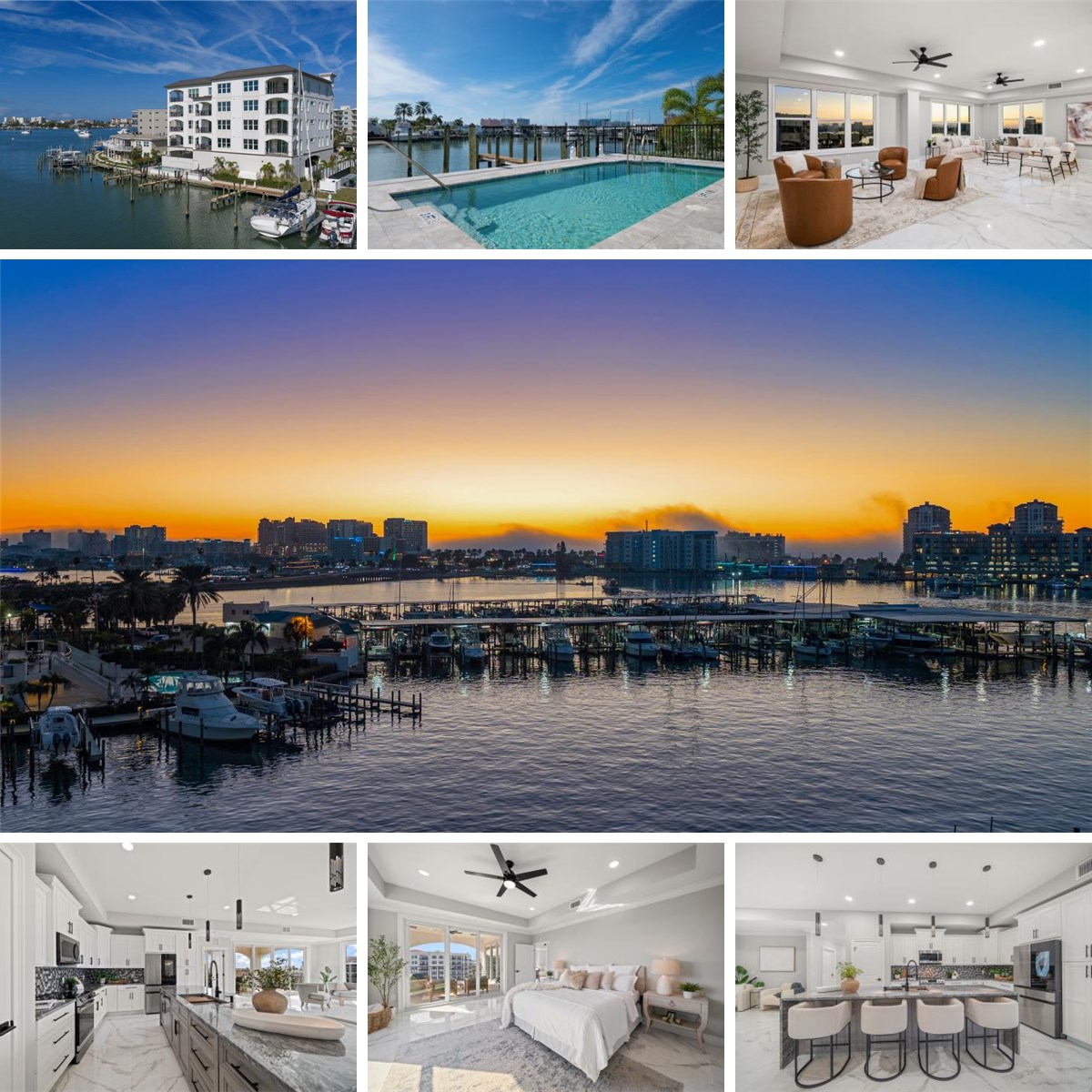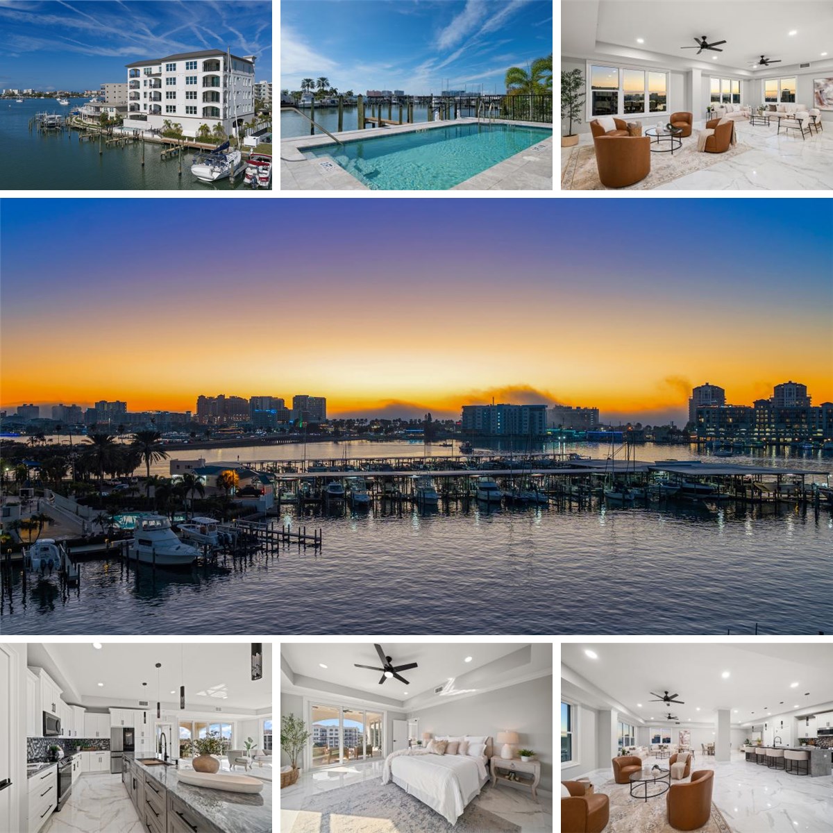 Introducing the penthouse residence at La Brisa Del Mar, the final opportunity to own the top-floor home in this boutique luxury condominium in Clearwater’s highly sought-after Island Estates, where refined coastal modern living meets expansive Intracoastal water views. This move-in-ready, new construction 2,760-square-foot penthouse features an oversized living area and expansive terraces that frame stunning waterfront vistas and create seamless indoor-outdoor living. The open-concept interior showcases elegant tile flooring and a beautifully appointed kitchen with quartzite countertops, an extra-large island, and stainless steel appliances, anchoring the main living space with modern sophistication. Offering four bedrooms and two baths, the primary suite is a tranquil retreat with a spacious walk-in closet and a spa-inspired ensuite featuring double vanities, a private water closet, and a luxurious walk-in shower with a rain-style shower head. Built on 110 pilings and featuring PGT impact resistant hurricane windows, this quality new construction offers exceptional peace of mind. The penthouse includes two under-building assigned parking spaces. Residents enjoy a waterfront pool and the rare opportunity to purchase a deep water Intracoastal boat slip. Ideally located just minutes from shopping, dining, and world-famous Clearwater Beach, this last remaining penthouse delivers elevated, private, and polished waterfront living in an intimate setting.